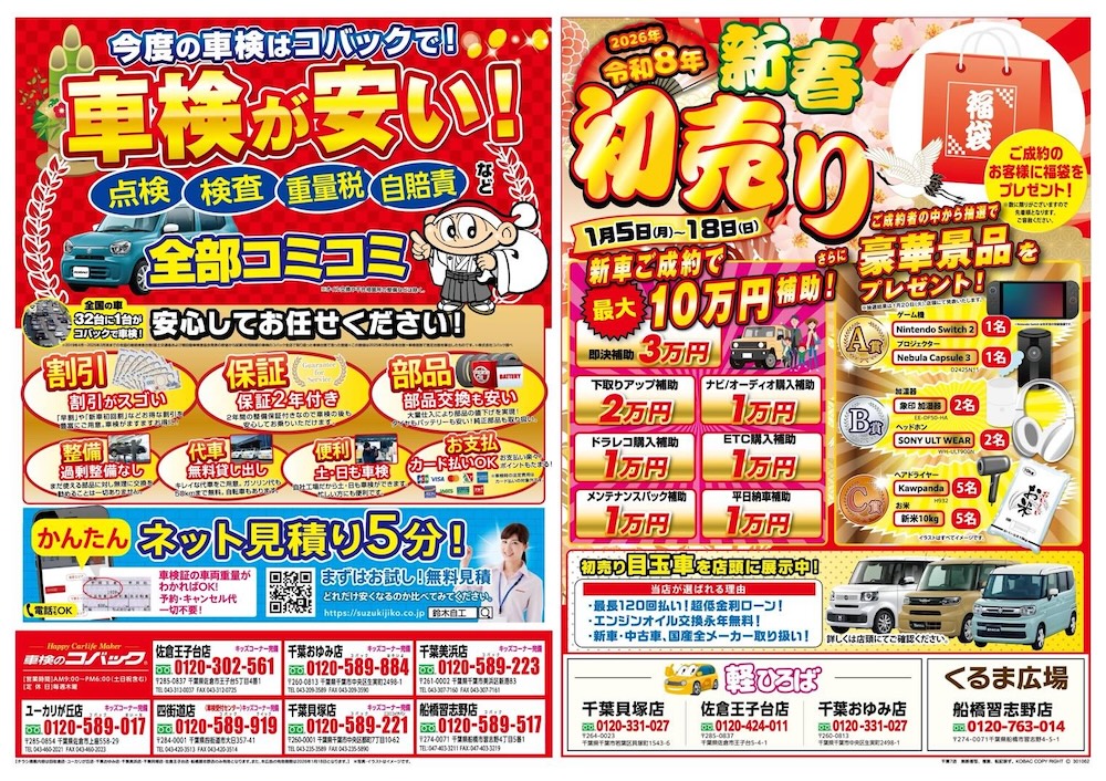 鈴木自工株式会社は千葉市中央区・美浜区に車検のコバック店を3店舗運営しております。車検受付時間やアクセス方法をご確認下さい。